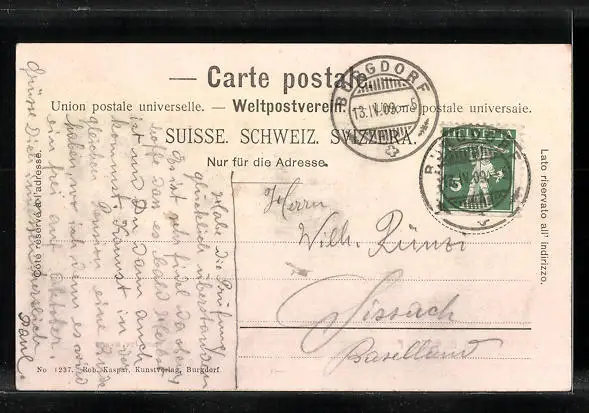 alte Ansichtskarte, gelaufen 1909, guter Zustand