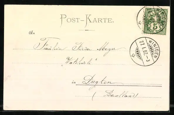 alte Ansichtskarte, gelaufen 1902, guter Zustand