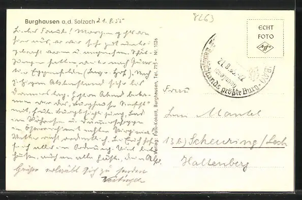gelaufen 1955, Briefmarke entfernt, sonst guter Zustand