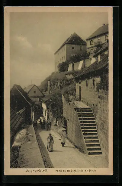 AK Burgkundstadt, Partie an der Lendstrasse mit der Schule