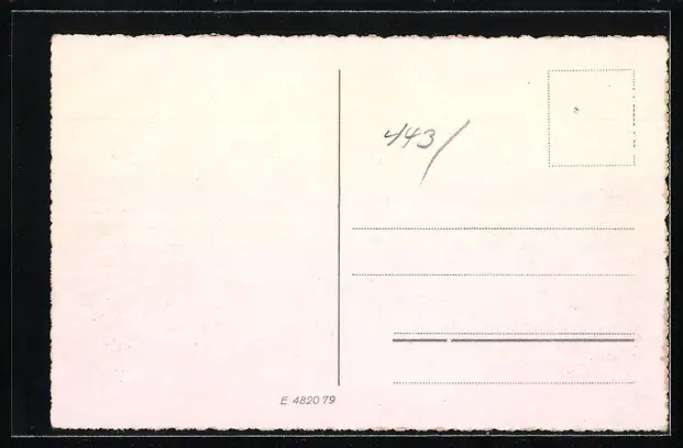 Personenbezogene Daten auf der Rückseite der Karte wurden durch blauen Textmarker unkenntlich gemacht. Die blauen Stellen sind auf die Vorderseite durchgeweicht und wirken sich negativ auf das Postkartenfoto aus