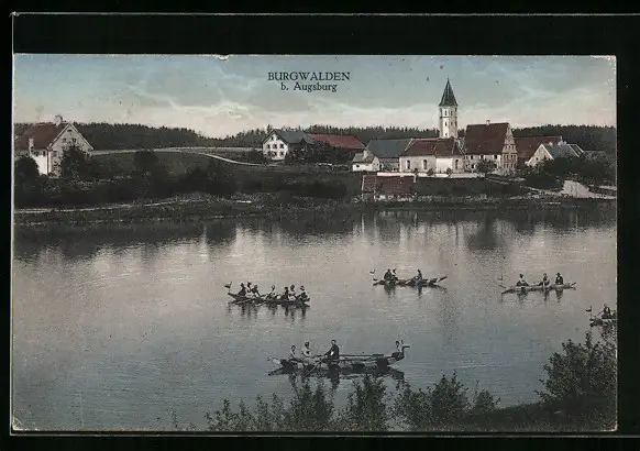 AK Burgwalden bei Augsburg, Ortspanorama mit Ruderpartie