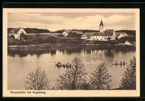 AK Burgwalden bei Augsburg, Teilansicht mit Ruderpartie