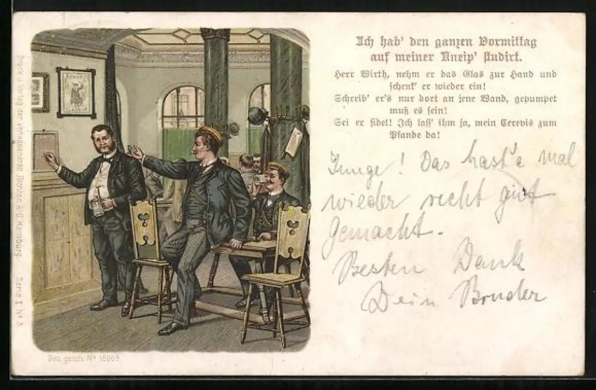 AK Burschenschafter in einem Gasthaus, studentische Szene