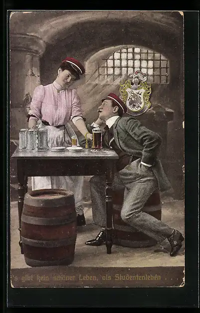 AK Burschenschafter mit seiner Geliebten, studentische Szene