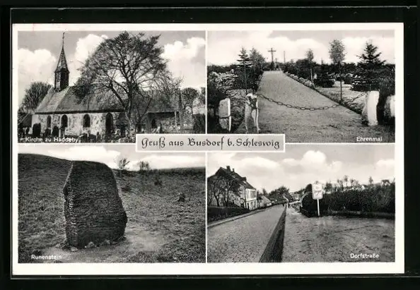 AK Busdorf b. Schleswig, Kirche zu Haddeby, Runenstein, Ehrenmal