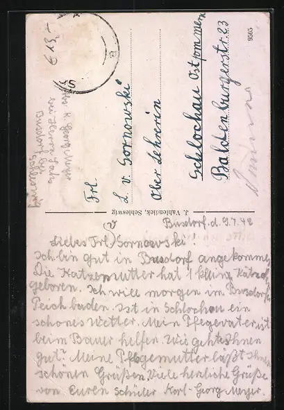 alte Ansichtskarte, gelaufen 1942, Briefmarke entfernt, rückseitig Oberflächenschaden, Eckknick re. unten, Bugspur re. oben, guter Zustand