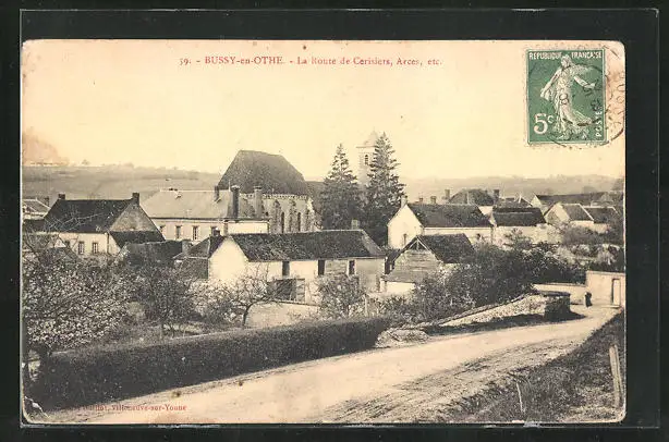 AK Bussy-en-Othe, La Route de Cerisiers, Arces etc., l`Eglise