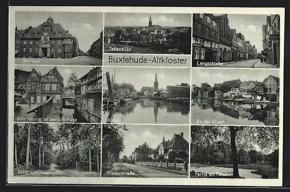 AK Buxtehude, Ansichten Rathaus, Staderstrasse, Partie am Forst