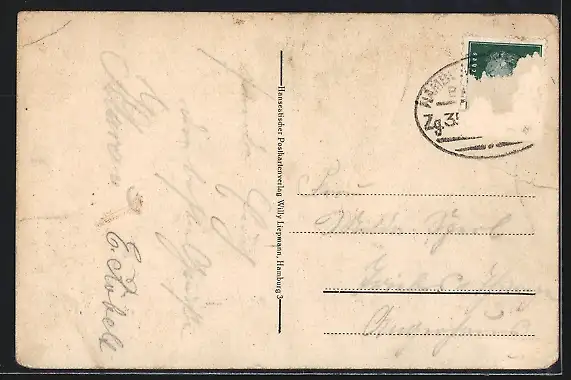 alte Ansichtskarte, gelaufen, Briefmarke entfernt, Eckknick re. oben, Bugspuren li. und re. mittig, guter Zustand