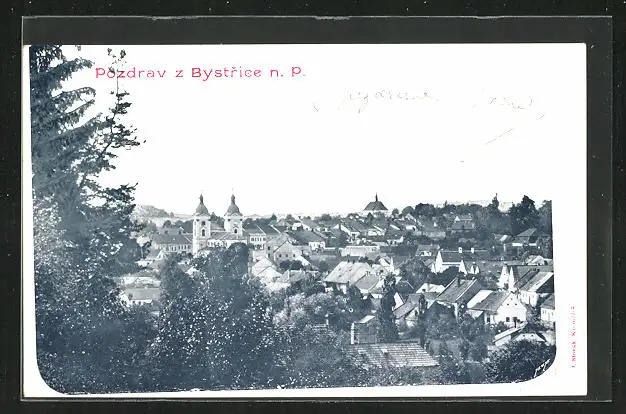 AK Bystrice n. P., Blick über die Dächer der Stadt