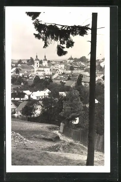 AK Bystrice n. Pernst, Totalansicht vom Ort mit Kirchen