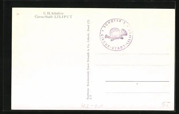 AK C. H. Schäfers Circus-Stadt Liliput, Liliputaner in Kostümen