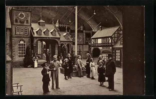 AK C. H. Schäfers Märchenstadt Lilliput, Liliputaner in Uniform auf dem Marktplatz
