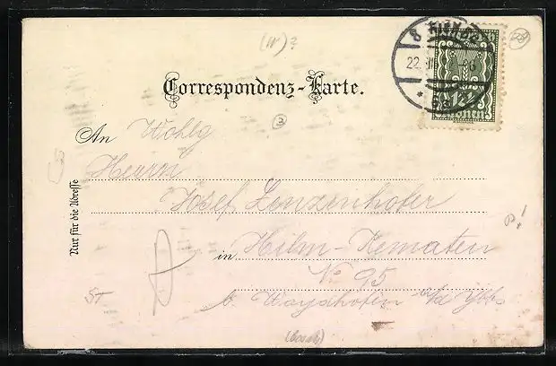 alte Ansichtskarte, gelaufen 1922, Eckknick unten li., Bugspur re., guter Zustand