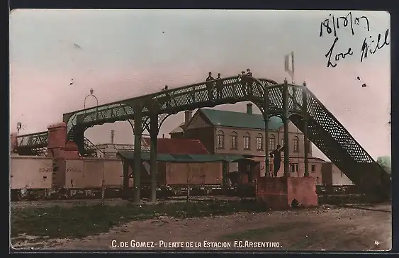 AK C. de Gomez, Puente de la Estacion F.C. Argentino, Bahnhof