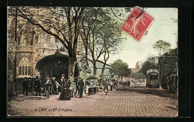 AK Caen, Le Boulevard St-Pierre, Strassenbahn