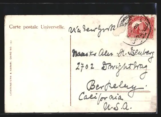 Personenbezogene Daten auf der Rückseite der Karte wurden durch blauen Textmarker unkenntlich gemacht. Die blauen Stellen sind auf die Vorderseite durchgeweicht und wirken sich negativ auf das Postkartenfoto aus