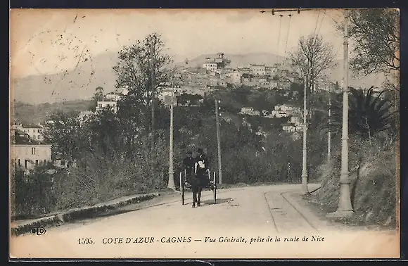 AK Cagnes, Vue Générale, prise de la route de Nice