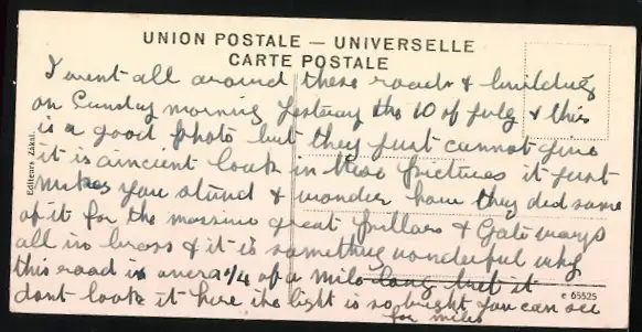 Personenbezogene Daten auf der Rückseite der Karte wurden durch blauen Textmarker unkenntlich gemacht. Die blauen Stellen sind auf die Vorderseite durchgeweicht und wirken sich negativ auf das Postkartenfoto aus