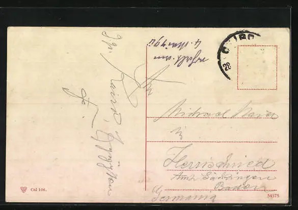 alte Ansichtskarte, gelaufen, Briefmarke entfernt, Stempelspur, guter Zustand