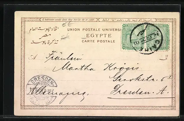 gelaufen 1905, kleiner Einriss li. oben, guter Zustand