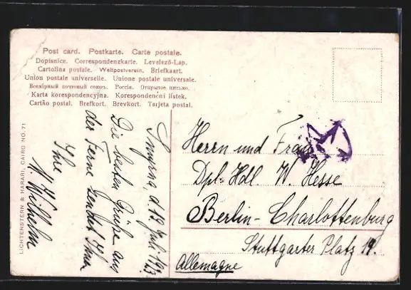 alte Ansichtskarte, gelaufen, Briefmarke entfernt, Eckknick re. oben, guter Zustand