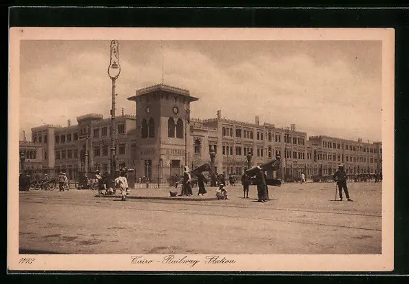 AK Cairo, Railway Station, Bahnhofsgebäude mit Vorplatz