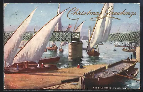 AK Cairo, The Nile Bridge opened, Christmas Greetings
