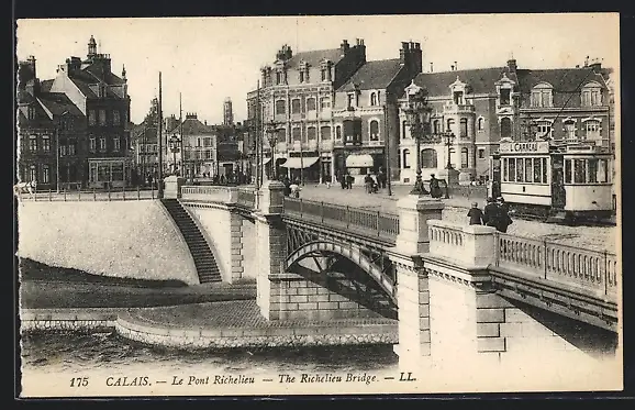 AK Calais, Le Pont Richelieu, Strassenbahn