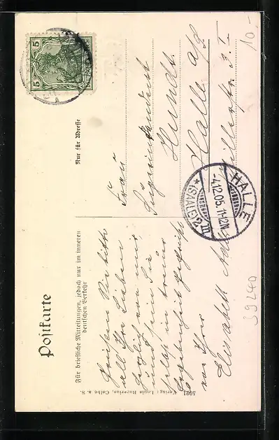 alte Ansichtskarte, gelaufen 1905, guter Zustand