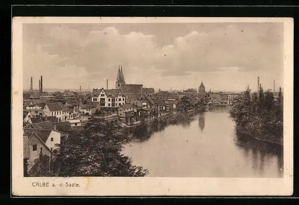 AK Calbe a. d. Saale, Ortsansicht aus der Vogelschau