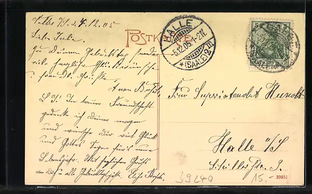 alte Ansichtskarte, gelaufen 1905, guter Zustand