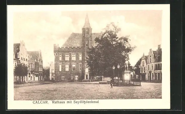 AK Calcar, Rathaus mit Seydlitz-Denkmal