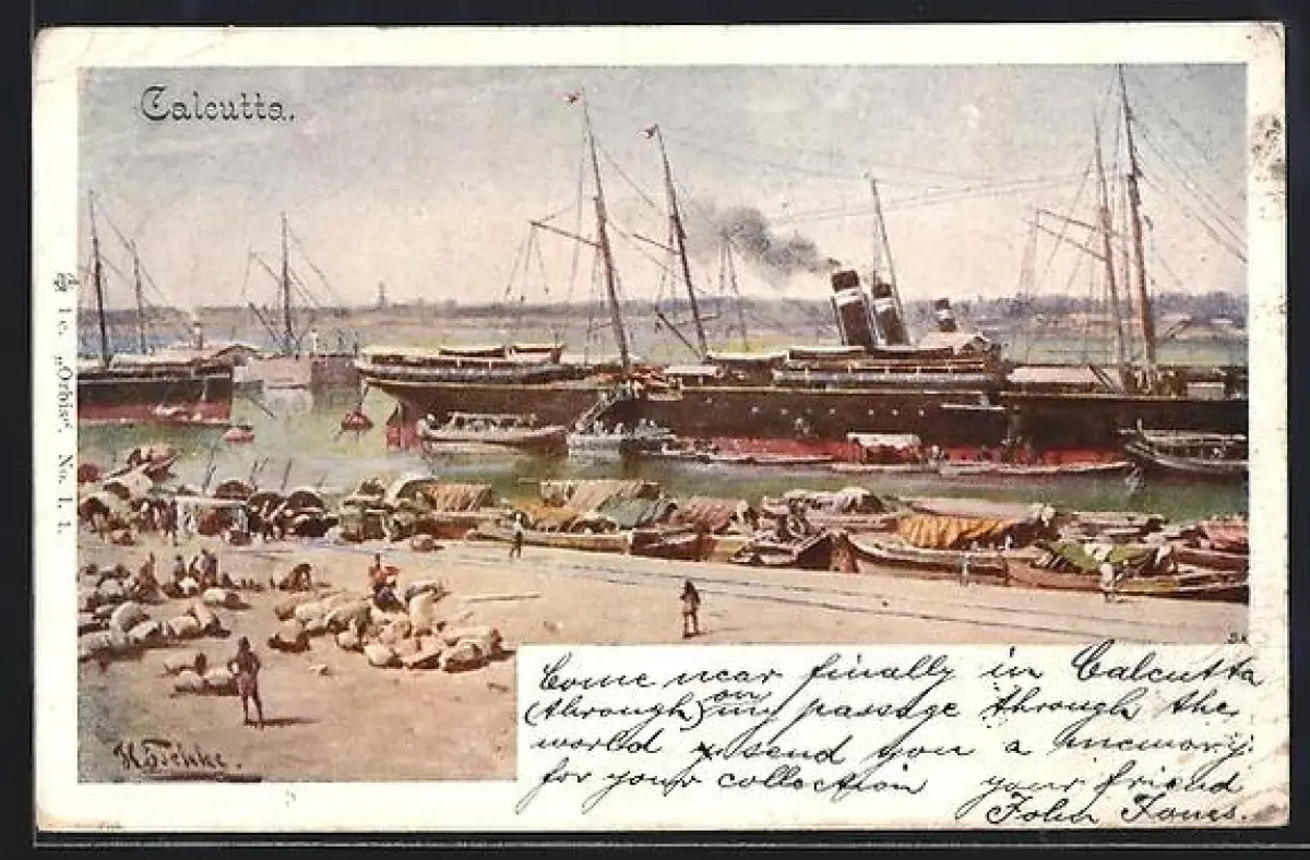 AK Calcutta, Dampfer im Hafen