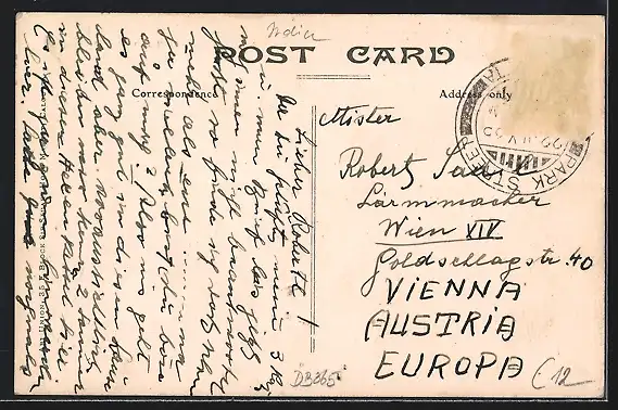 alte Ansichtskarte, gelaufen, Briefmarke entfernt, guter Zustand