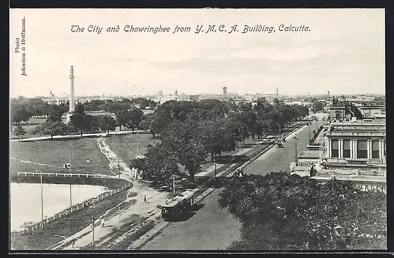 AK Calcutta, The City and Chowringhee from Y. M. C. A. Building, Strassenbahn