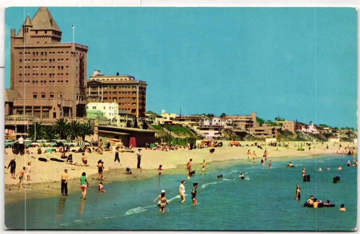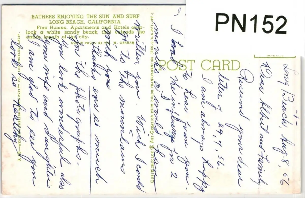 AK California Bathers Enjoying the sun and Surf Long Beach 1956 #PN152