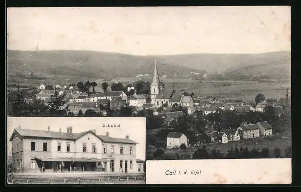AK Call i. d. Eifel, Ortsansicht mit Bahnhof