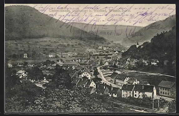 AK Calmbach b. Wildbad, Teilansicht mit Strassenpartie