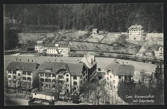 AK Calw, Die Kratzenfabrik aus der Vogelschau