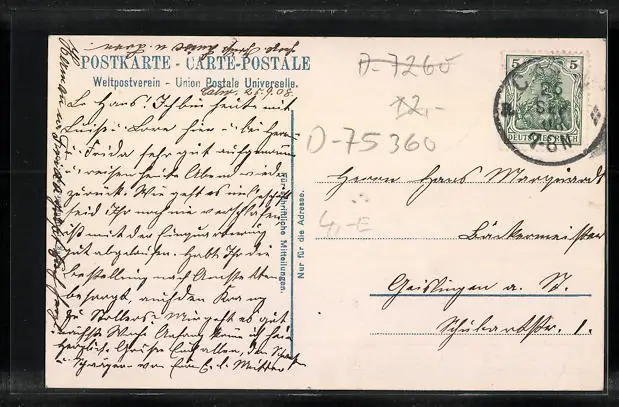 Weitere Ansichtskarten zur Postleitzahl 75365