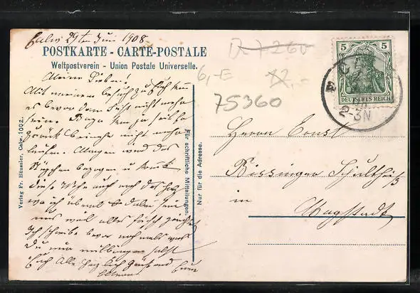 Weitere Ansichtskarten zur Postleitzahl 75365