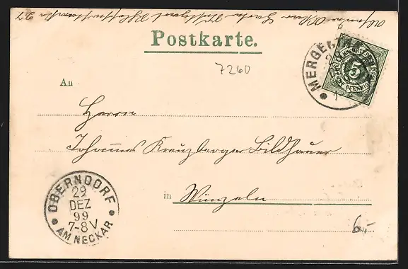 alte Ansichtskarte, gelaufen 1899, guter Zustand