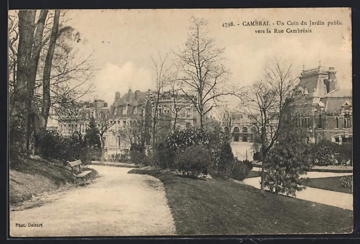 AK Cambrai, Un Coin du Jardin public vres la Rue Cambrésis