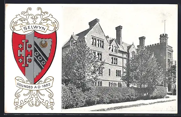 AK Cambridge, Ortsansicht, Studentenwappen Selwyn