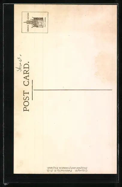 Personenbezogene Daten auf der Rückseite der Karte wurden durch blauen Textmarker unkenntlich gemacht. Die blauen Stellen sind auf die Vorderseite durchgeweicht und wirken sich negativ auf das Postkartenfoto aus