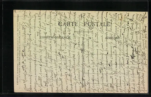 Personenbezogene Daten auf der Rückseite der Karte wurden durch blauen Textmarker unkenntlich gemacht. Die blauen Stellen sind auf die Vorderseite durchgeweicht und wirken sich negativ auf das Postkartenfoto aus