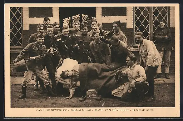 AK Camp de Beverloo, Soldatenhumor Kameraden wecken Langschläfer