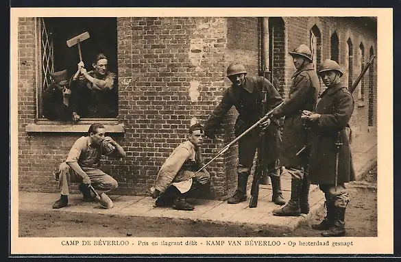 AK Camp de Beverloo Soldatenhumor Patrouille macht Gefangene